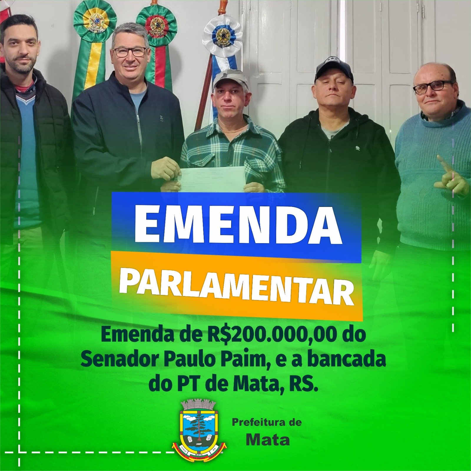🤝 A Prefeitura Municipal de Mata agradece ao Senador Paulo Paim e à bancada do PT (Partido dos Trabalhadores) de Mata pela destinação de uma emenda parlamentar no valor de...