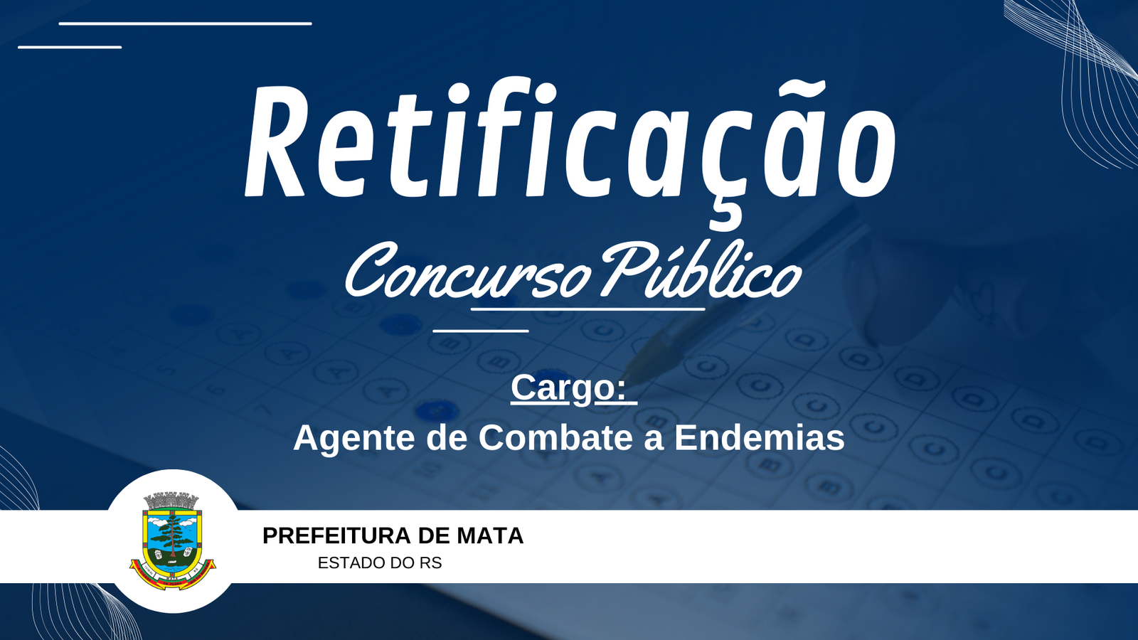 Na tarde de hoje (18/01) foi publicado novo edital de retificação referente a inscrições para o cargo de Agente de Combate a Endemias – ACE, o qual torna público o indeferimento de algumas inscrições que não realizarem o pagamento da taxa de complementação.