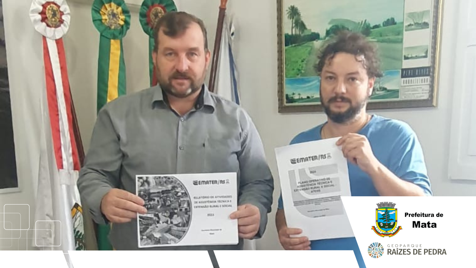 Na manhã de hoje (29/12), o Prefeito Rogério Kuhn recebeu em seu Gabinete o Chefe do Escritório Municipal da Emater/RS- Ascar, Bernardo Jornada, que entrou ao Chefe do Executivo o Relatório de Atividades de ATERS (Assistência Técnica e Extensão Rural e Social) de 2023 e o Plano Operativo 2024, que contém as atividades planejadas para o próximo ano.