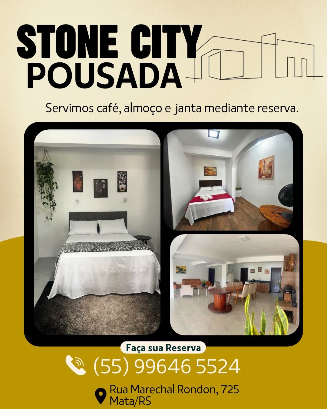 Pousada Stone City 📍 Rua Marechal Rondon, 725 📞 Reserve pelo (55) 99646-5524 ☕🍽️ Café, almoço e janta mediante reserva....