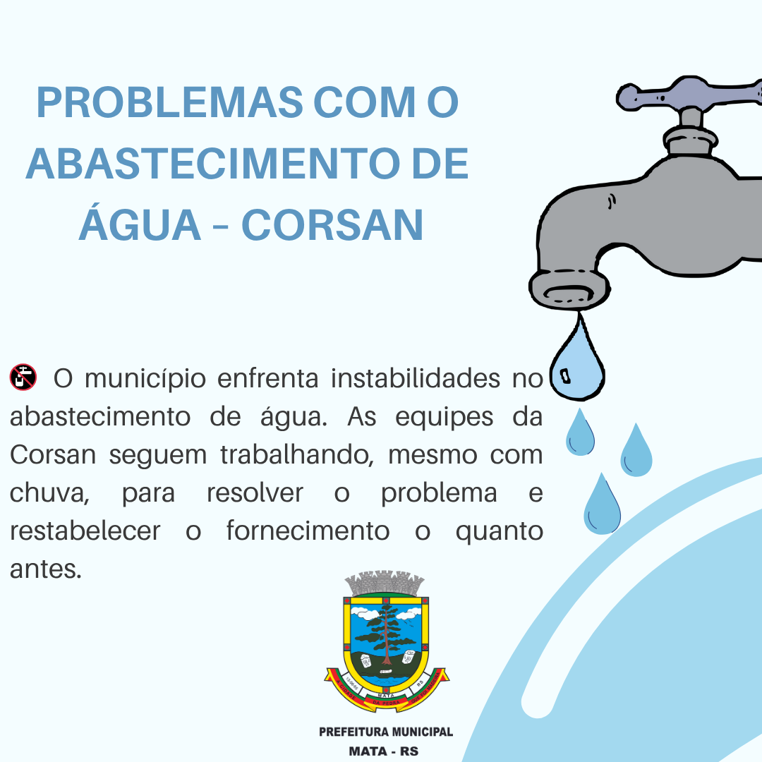 Informamos que algumas regiões do município de Mata,RS, estão enfrentando interrupções no abastecimento de água devido a instabilidades no sistema da Corsan.