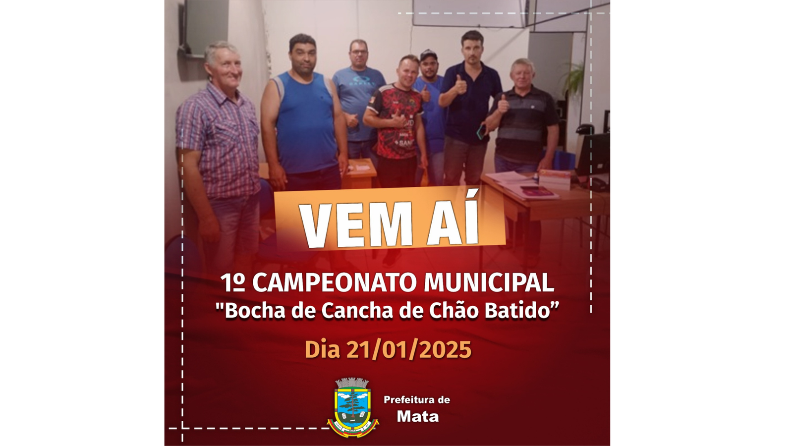 A Secretaria Municipal de Cultura, Turismo e Paleontologia, em parceria com o CMD (Conselho Municipal de Desporto), convida a todos para o 1º Campeonato Municipal de “Bocha de Cancha de Chão Batido” que acontecerá no dia 21 de janeiro de 2025.