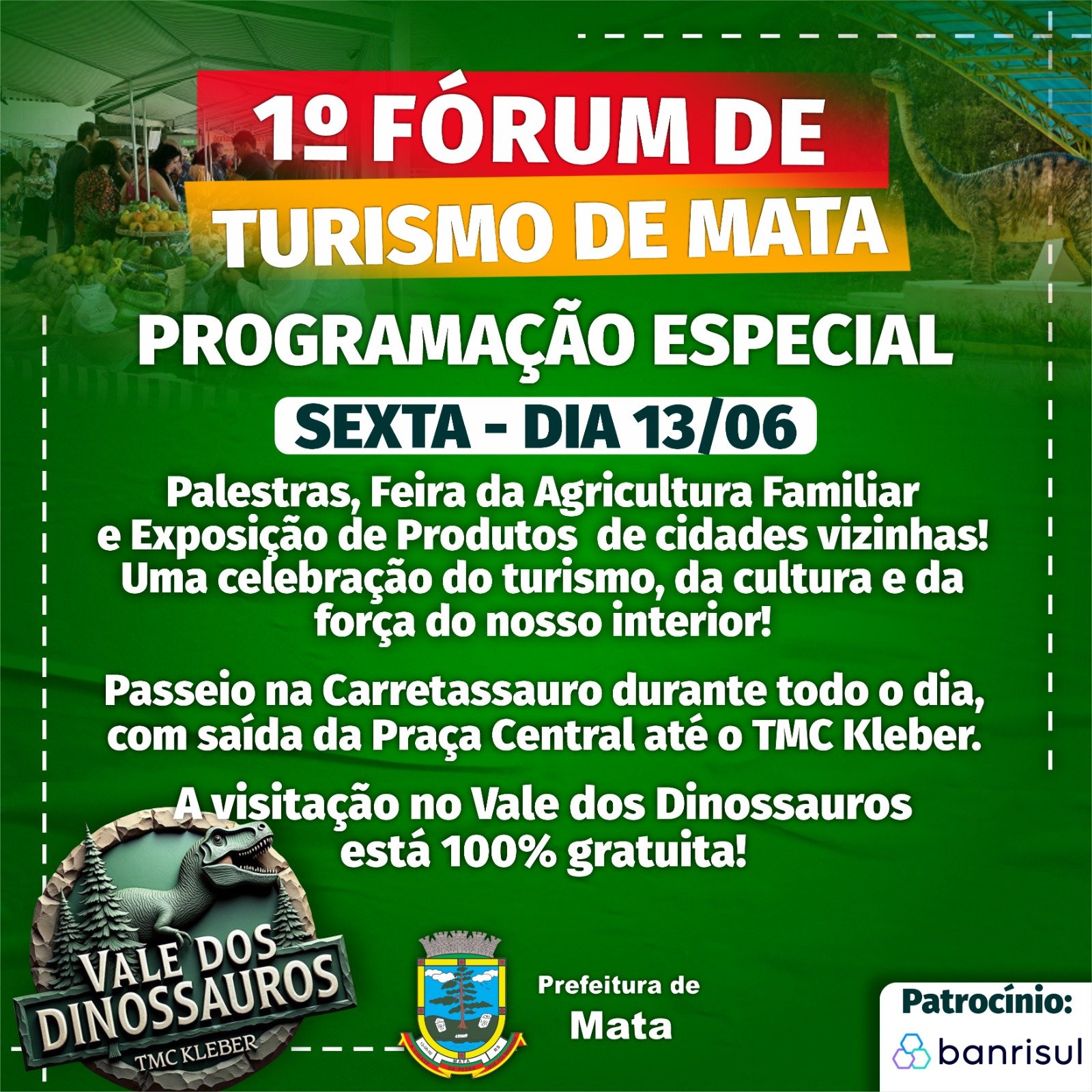 1º FÓRUM DO TURISMO DE MATA/RS – PROGRAMAÇÃO ESPECIAL! 🦕