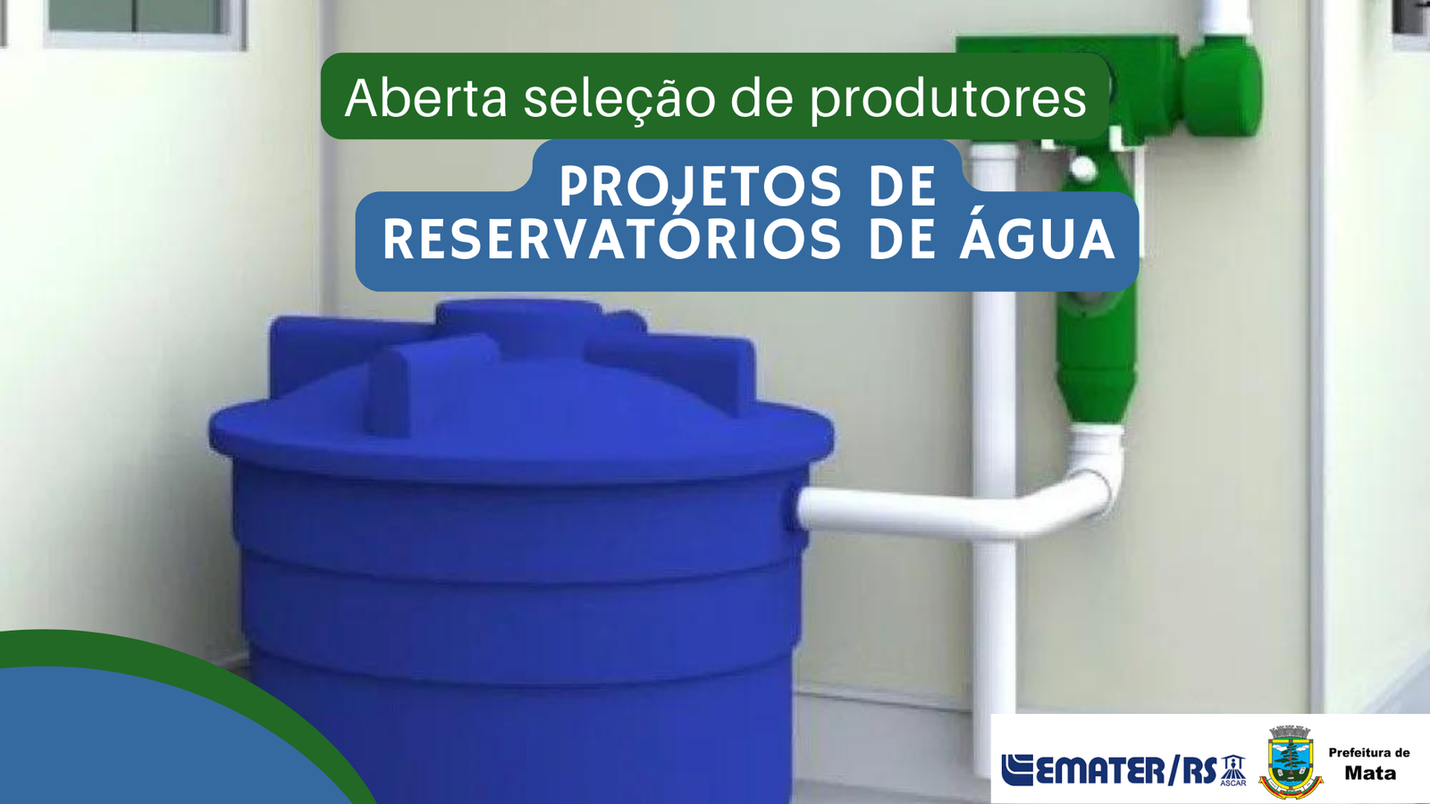 A Secretaria Municipal de Agricultura e Fomento Econômico, por meio do Conselho Municipal de Desenvolvimento Rural, juntamente com a Emater/RS-Ascar, tornam pública a abertura de inscrições para seleção de produtores que serão beneficiados com a elaboração de projetos de construção de cisternas e reservatórios.