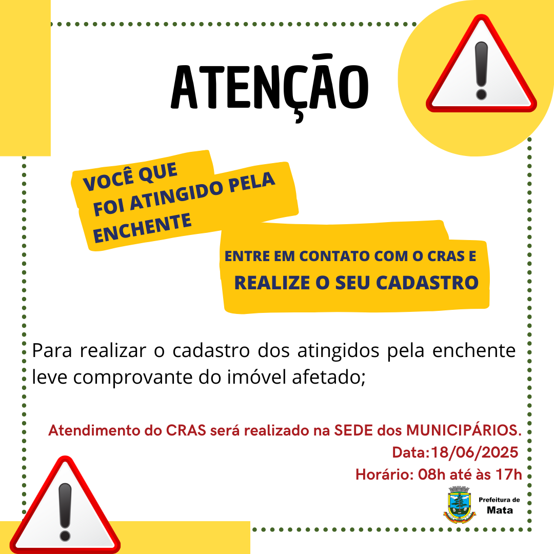 #DefesaCivil #Enchente2025 #CadastroCRAS #PrefeituradeMata #Solidariedade #AjudaHumanitária