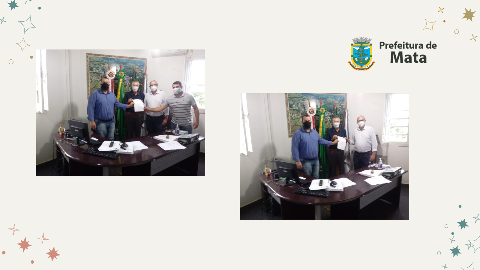 Na tarde desta quinta-feira, 15, o prefeito Rogério Kuhn recebeu em seu gabinete o assessor parlamentar Hermes Taschetto, do gabinete do deputado estadual Elton Weber (PSB), que esteve acompanhado do presidente do Sindicato dos Trabalhadores Rurais de Mata, Fabricio Murini. Também esteve presente o Secretário da Saúde Raul Warth.