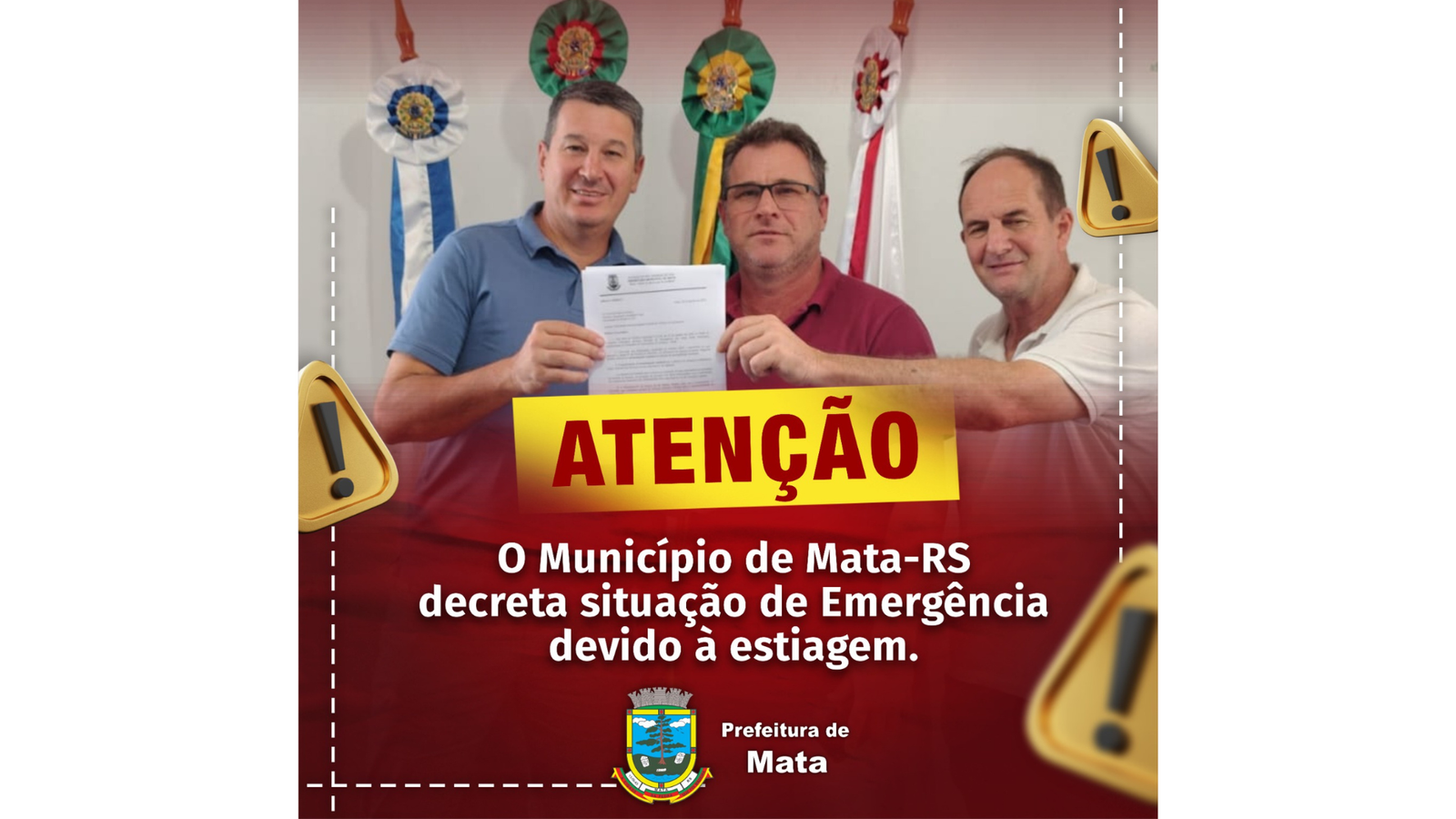 ☀️Devido à grave estiagem que afeta nossa região, o Município de Mata declara oficialmente situação de emergência. Estamos enfrentando desafios significativos com a falta de chuvas, o que impacta diretamente na produção agrícola e no abastecimento de água para a população.