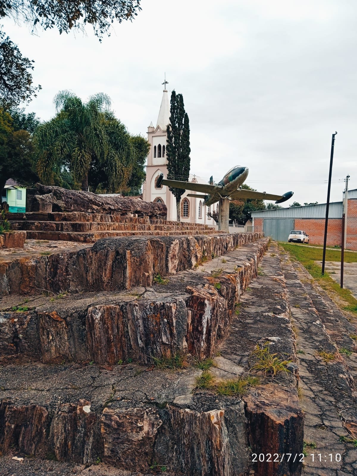 A praça, como o restante da cidade, é decorada com fósseis nas calçadas e nos canteiros. Também possui uma quadra de esporte, Aeronave Xavante e a Igreja Luterana, decorada com fósseis.