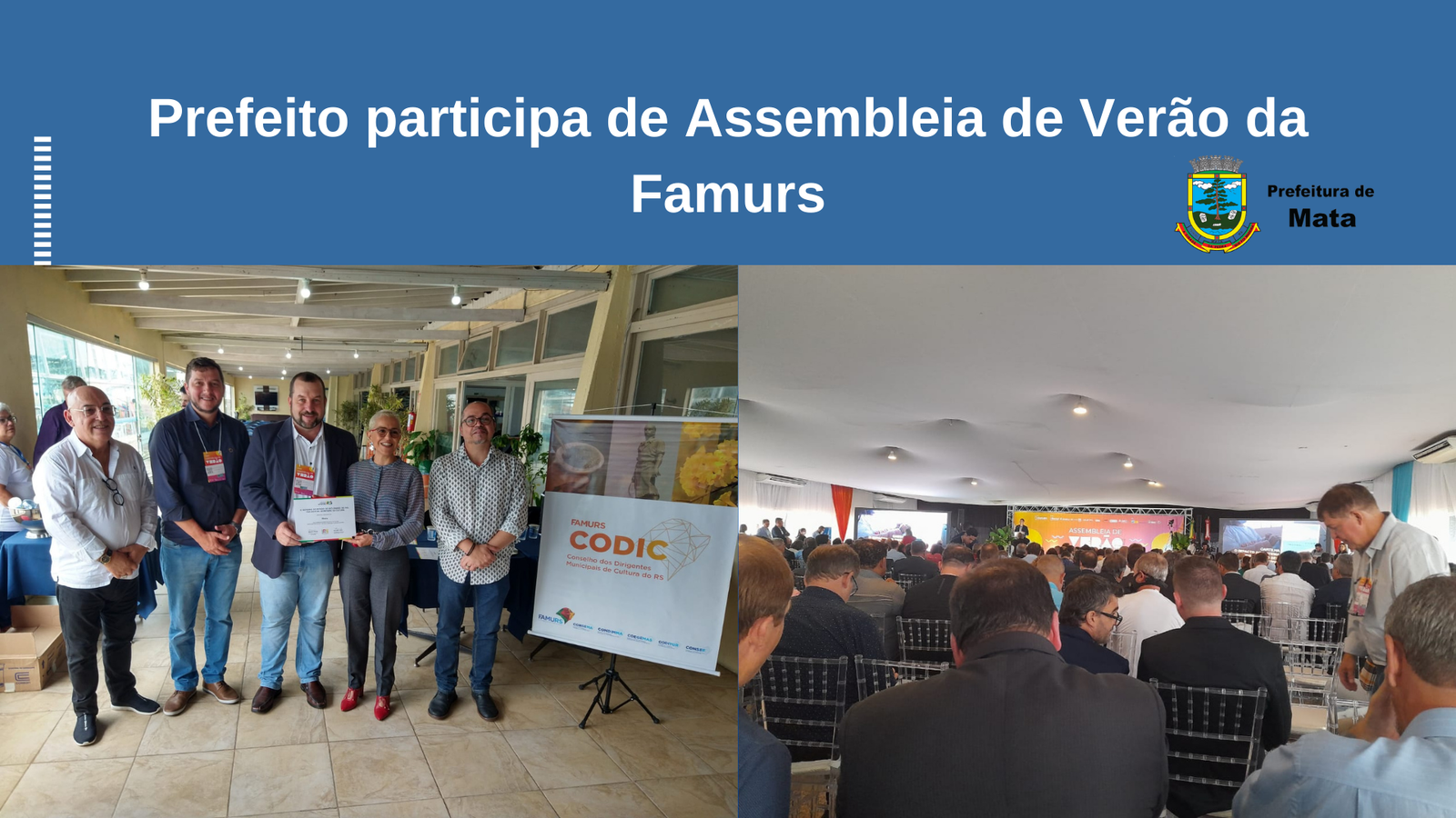 Nos dias 24 e 25 de março, o Prefeito Municipal Rogério Kuhn, juntamente com o Vice-Prefeito Mauricio Taschetto, participaram da Assembleia de Verão da Famurs, na cidade de Torres-RS, no litoral gaúcho, considerado o maior evento municipalista do Rio Grande do Sul (400 prefeitos participantes).