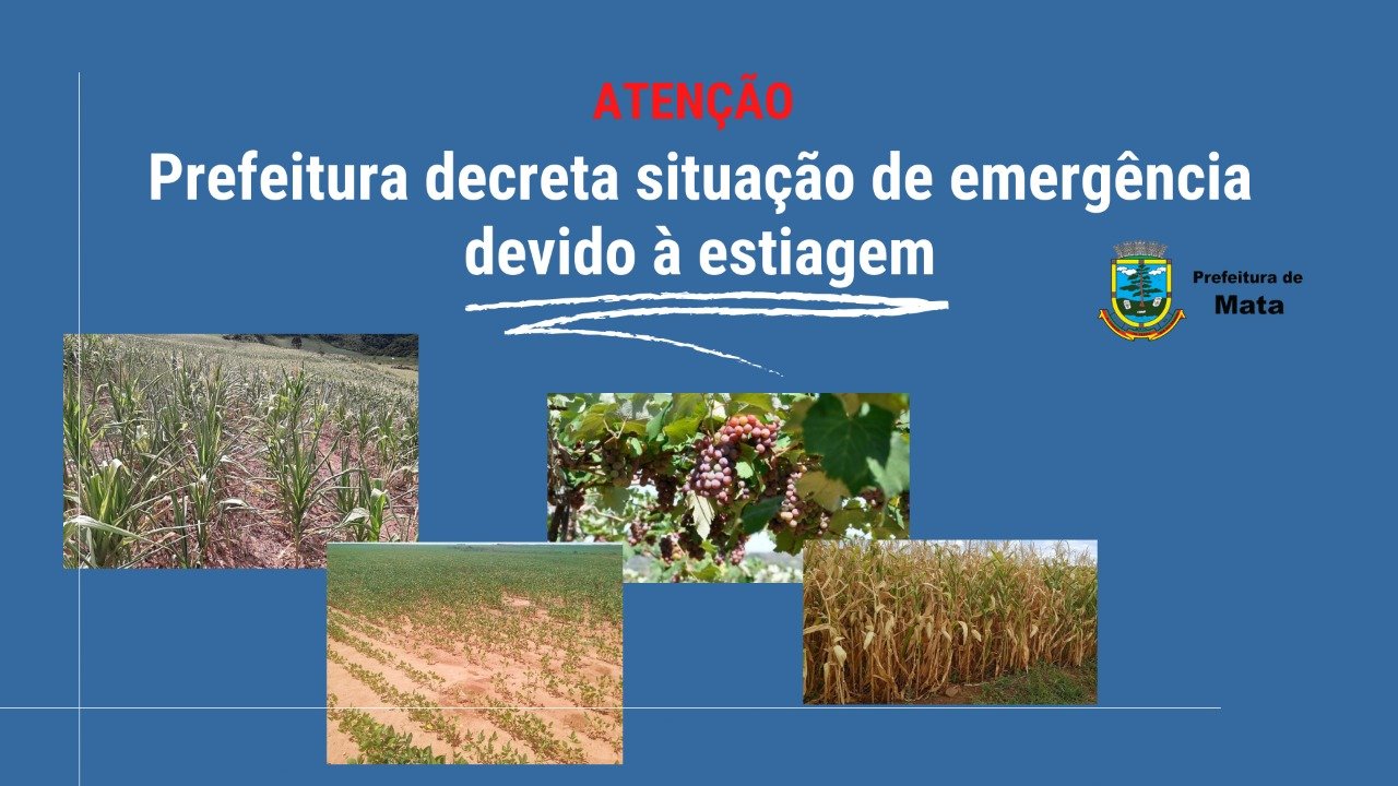 Na tarde de ontem (10/01) o Prefeito Municipal em exercício Maurício Taschetto assinou decreto que declara situação de emergência nas áreas do Município de Mata afetadas pelo evento adverso de estiagem.