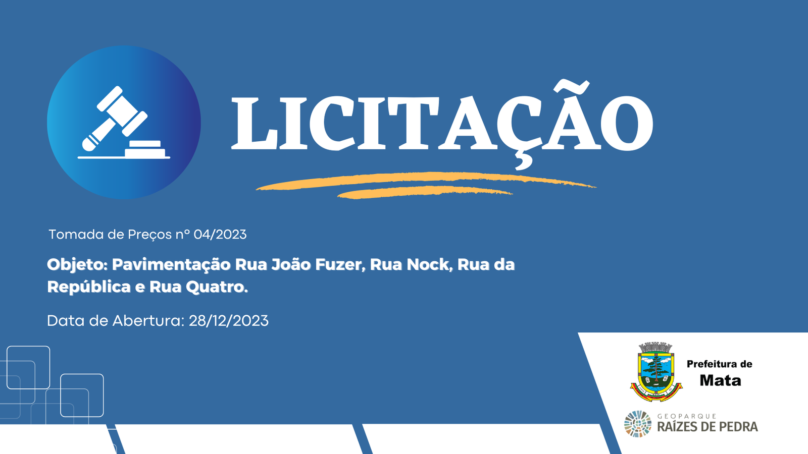 A Prefeitura de Mata publicou no dia de hoje (13/12) processo licitatório para realização de obras de pavimentação das seguintes vias urbanas: