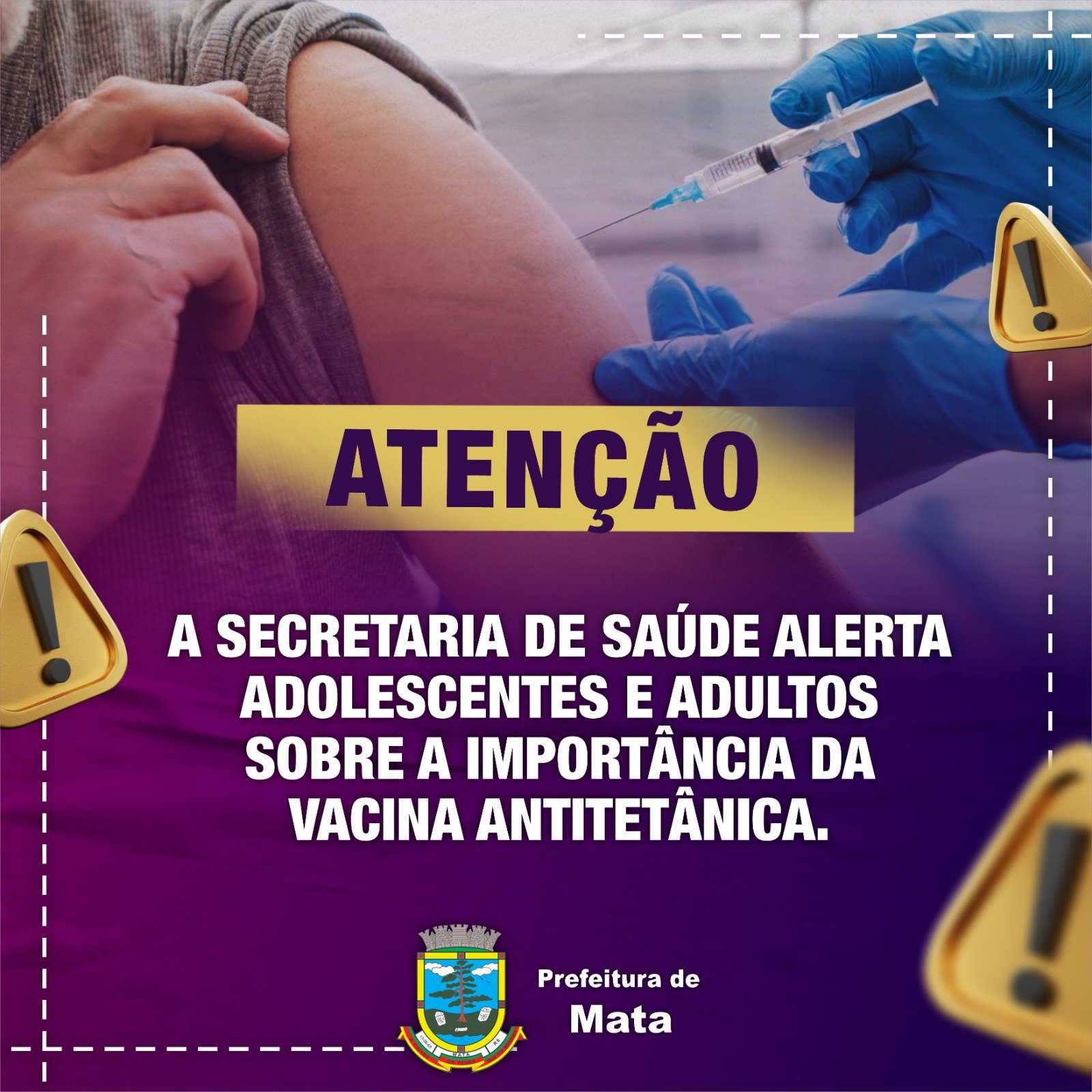 ℹ️🌟 A Secretaria de Saúde através da sala de vacinação lembra a todos os adolescentes e adultos sobre a importância da vacina antitetânica! 🔍✅